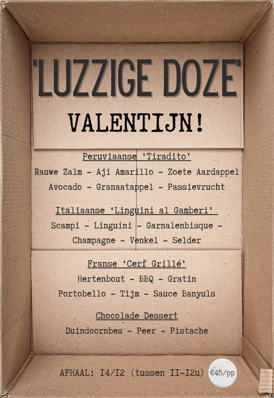Wie wil kan onze afhaal menu voor Valentijn bestellen!